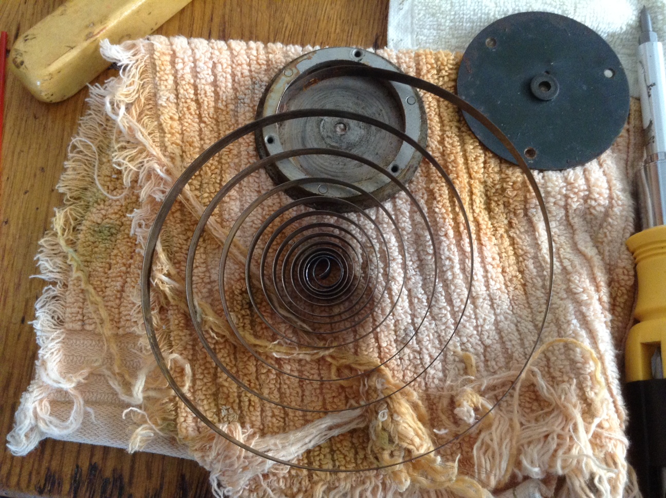 Spring is sprung. The mainspring on our new Oliver No. 9 was broken. This is (unfortunately) the least of her problems. How did I know her mainspring was broken? Because when I tried to wind the mainspring, it just gave a sad little snapping sigh and lost tension. Thanks to a great post by Tony … Continue reading Oliver Typewriter Mainspring Repair: AKA Insane Slinky Nightmare