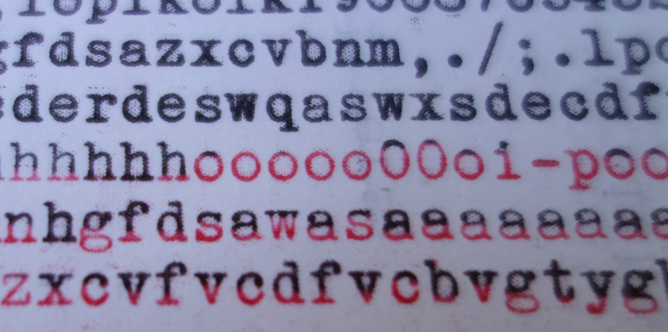 One of the last items on my to-do list was to adjust the ribbon throw. I found that while the typewriter printed just fine in black, several of the letters were printing half red and half black when I had it in red setting. I believe the official name of the problem is “bichrome mixing colors”.