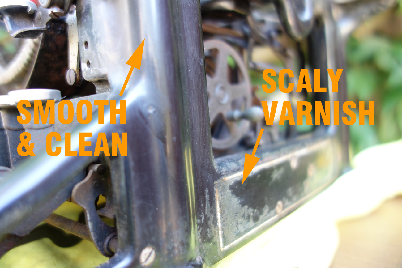I have an underwood no 5 from 1923 that I recently acquired. I plan on restoring/cleaning it myself but the exterior has these varnish/ clear coat? Pealing along with the Underwood logo above the keyboard And I would love to be able to preserve the logo while getting rid of the gross yellow flakes. How exactly did you fix this problem on yours? I am very new to this so thank you so much for your help!