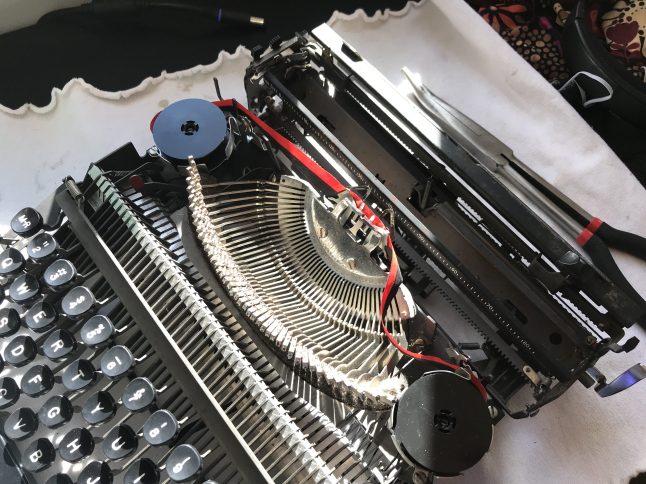 I enjoyed reading this. I just acquired one of these identical typewriters and it is all working except the arm on the left side falls all the way down and I can’t figure out how to make it stay up like it is supposed to while typing. Do you have any pointers? Thank you!