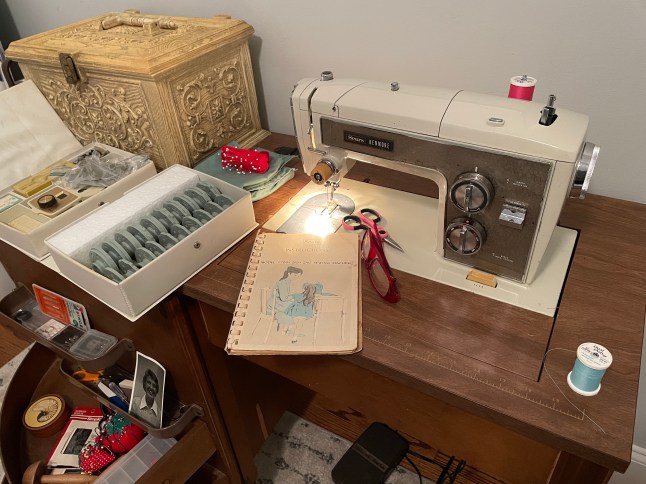 My Kenmore 158 is in tip-top shape and ready for action. We are preparing to greet a new member of the family in the spring and will envelope this new arrival in blankets and bibs and sleepers and love. Sewing is creative, generative and generous, a form of personal expression often grounded in service and love. It brings to mind generations of moms and grandmas hunched over their machines.
