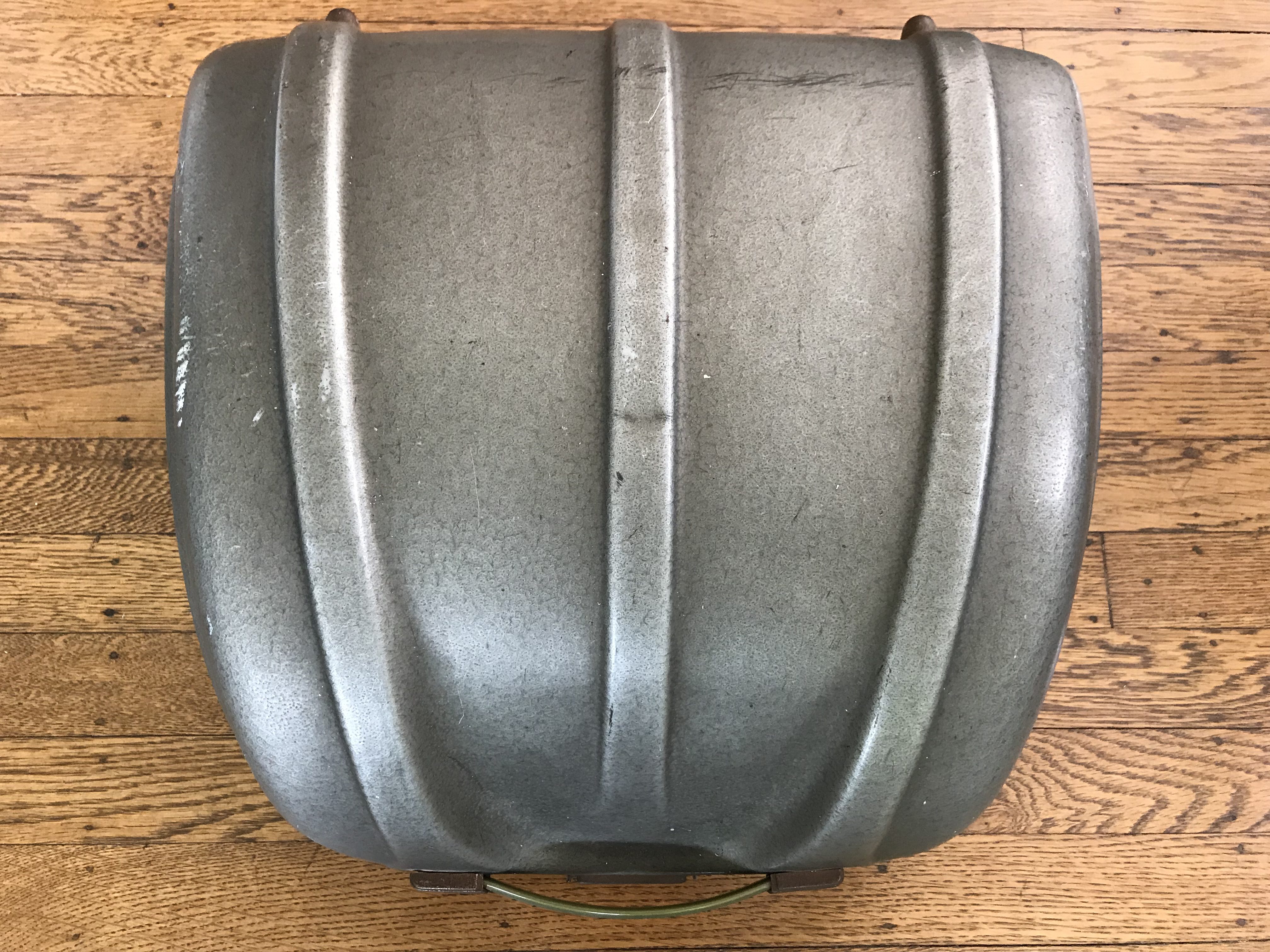 The case looks like it’s metal, but it’s actually very thin, fragile 1950s plastic. It has a couple small cracks at the hinges:
