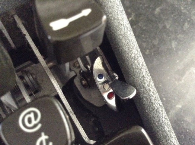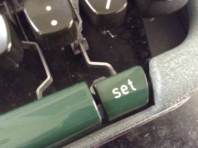 I pondered this a bit and considered investigating around back to figure out why the tabbing mechanism wasn’t getting triggered. I thought the better of it since this wasn’t my typewriter and lack of tabs wasn’t going to impair its functionality in a deal-breaking way. I am sort of “Meh” on tabs anyway – to me they are not mission-critical. If I were typing spreadsheets, I’d be helpless without tabs, but this Olympia here will probably spend the rest of its life typing love letters and thank you notes.
