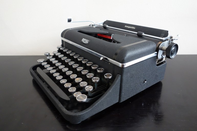 The other morning my husband spotted my dear neighbor Connie standing silently, patiently outside my front door with a Royal 10 in her arms. She had carried the machine up the street from her house despite the fact that it weighs a full third of her body weight. The Royal 10 had been in the family and no one wanted it (!), so she hauled it up the block to my home for unwed typewriters. I haven’t lived here long, but the neighbors are already on to me, familiar with my strange quirks and enthusiasms.