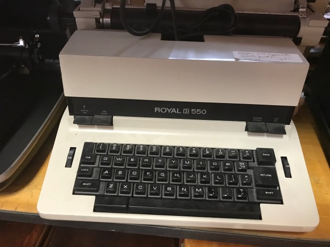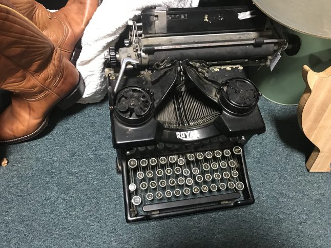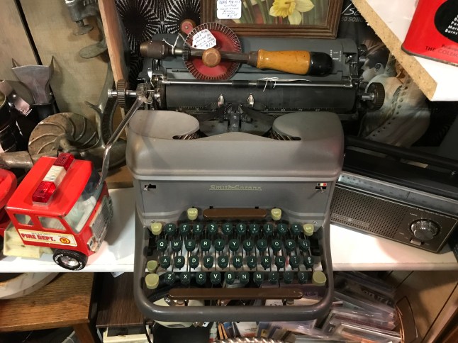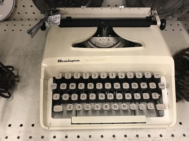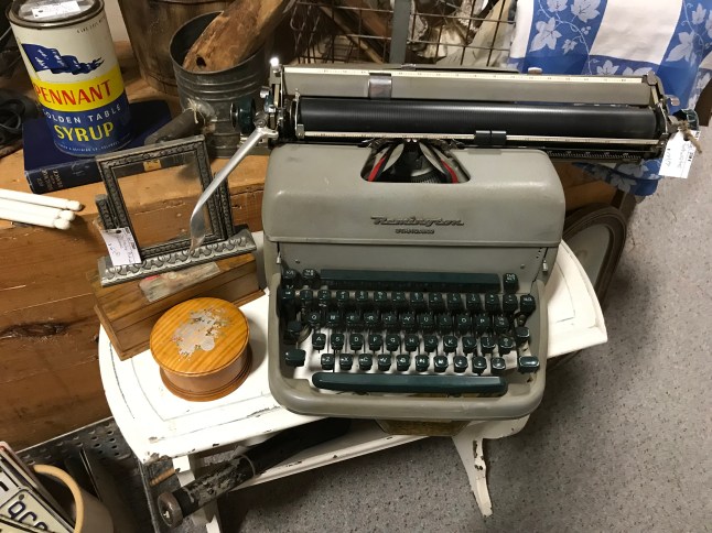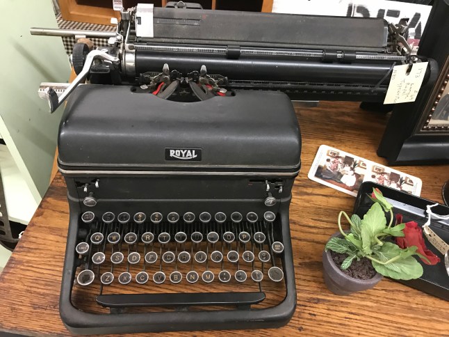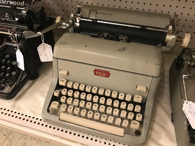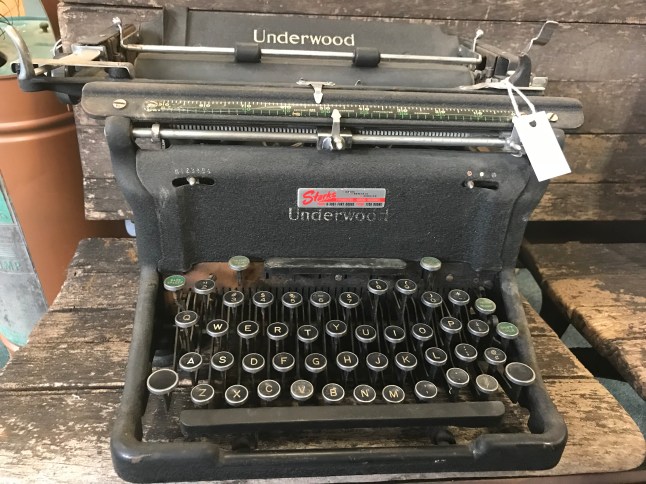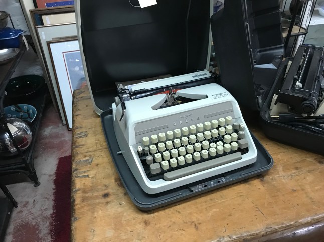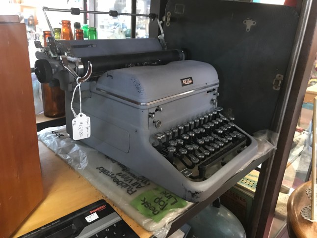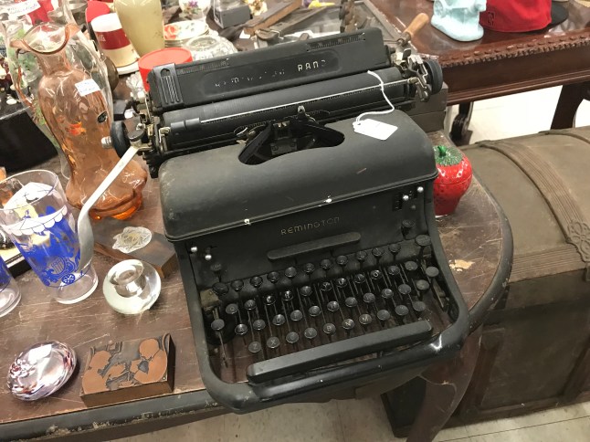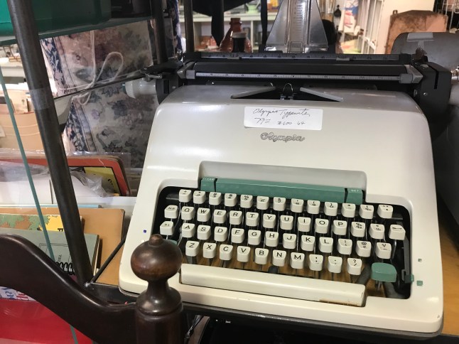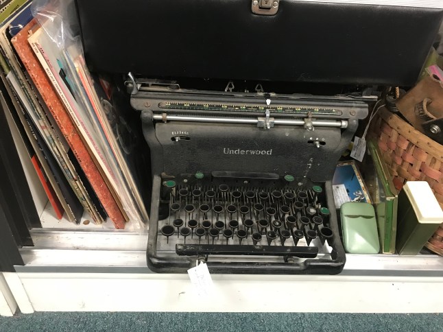 The gentlemen at the counter seemed bemused when I asked about typewriters. They rarely got them and the big ones were hard to sell. He had an old black Underwood (very heavy) at home that was broken that he couldn’t sell. He wished he could sell it to me but he didn’t have it at the store.