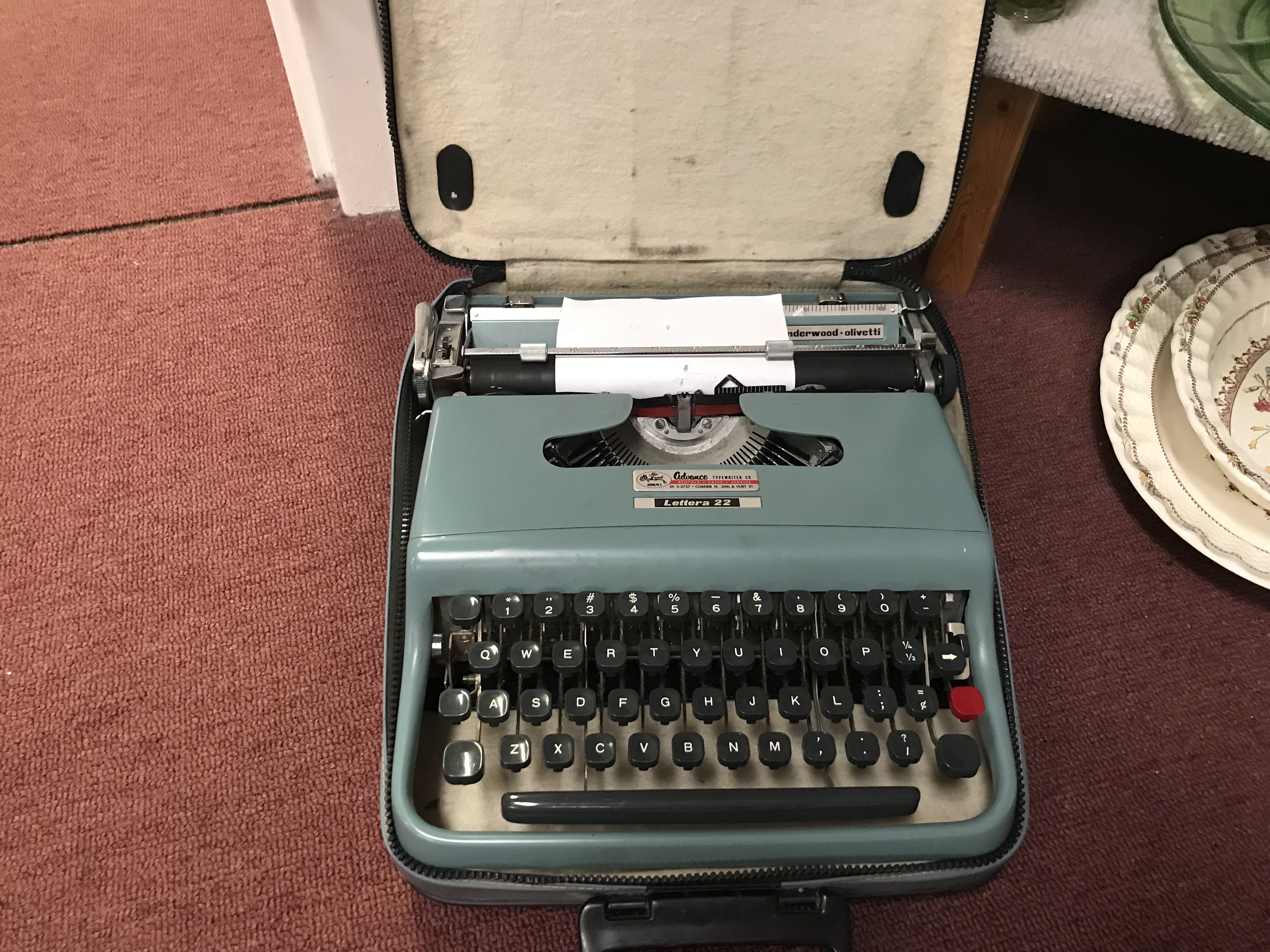 My traveling typewriter will be the  Olivetti Lettera 22 – it’s in fine fettle.  I should swap out the ribbon before we leave.