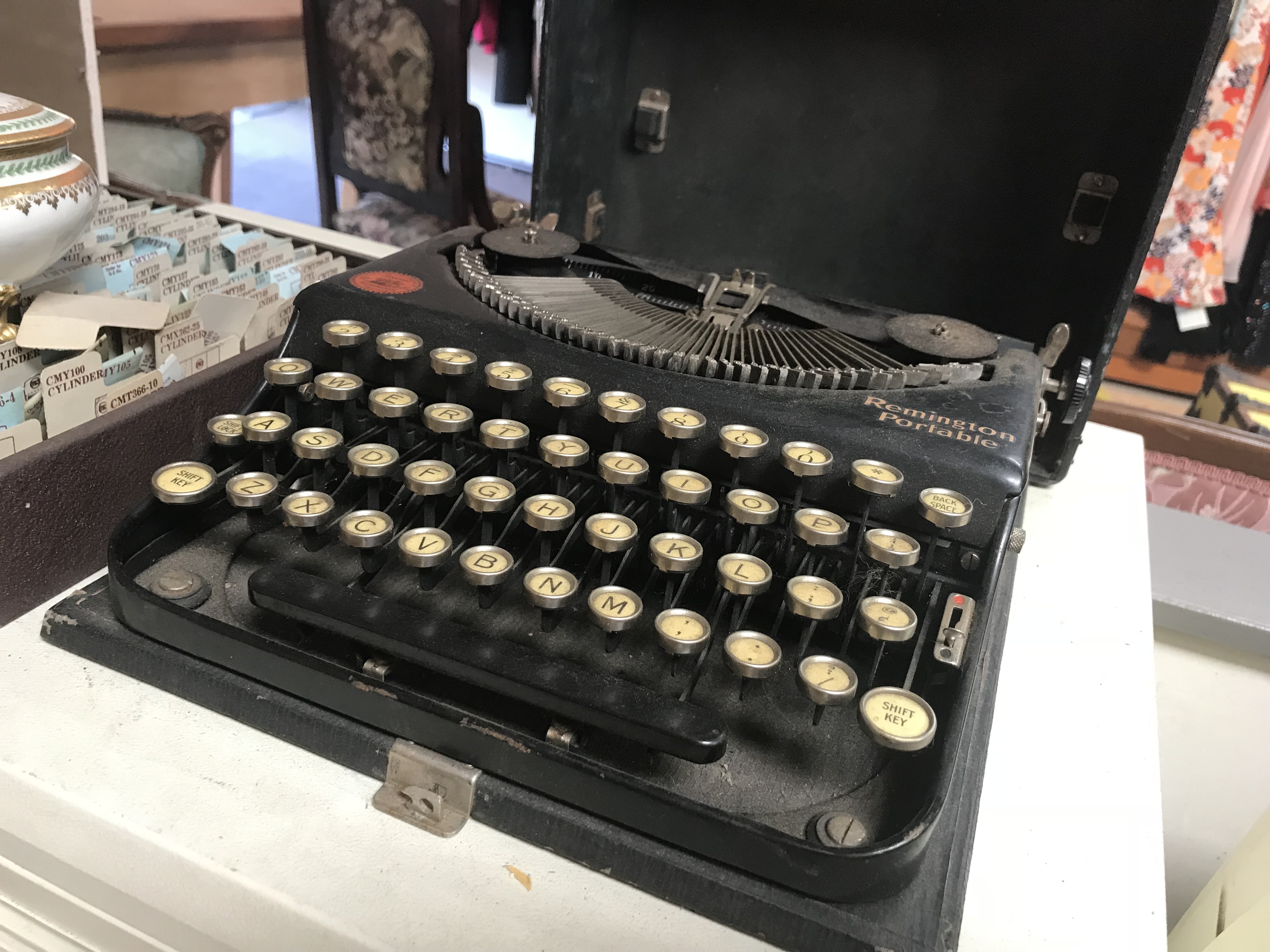 My daughter and I were a bit overwhelmed by all of it at first, but we broke it down scientifically and went through each row looking for typewriters. My daughter has a good eye and can spot a typewriter case a mile away, even when grouped with luggage.
