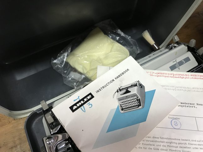 The Adler came with the factory control sheet, user manual, cleaning set.  Looks like it has an interesting typeface.